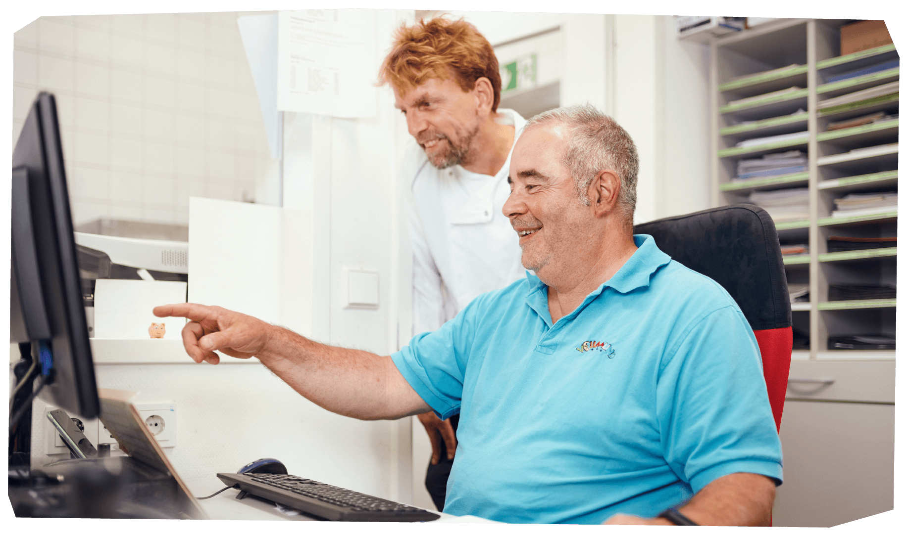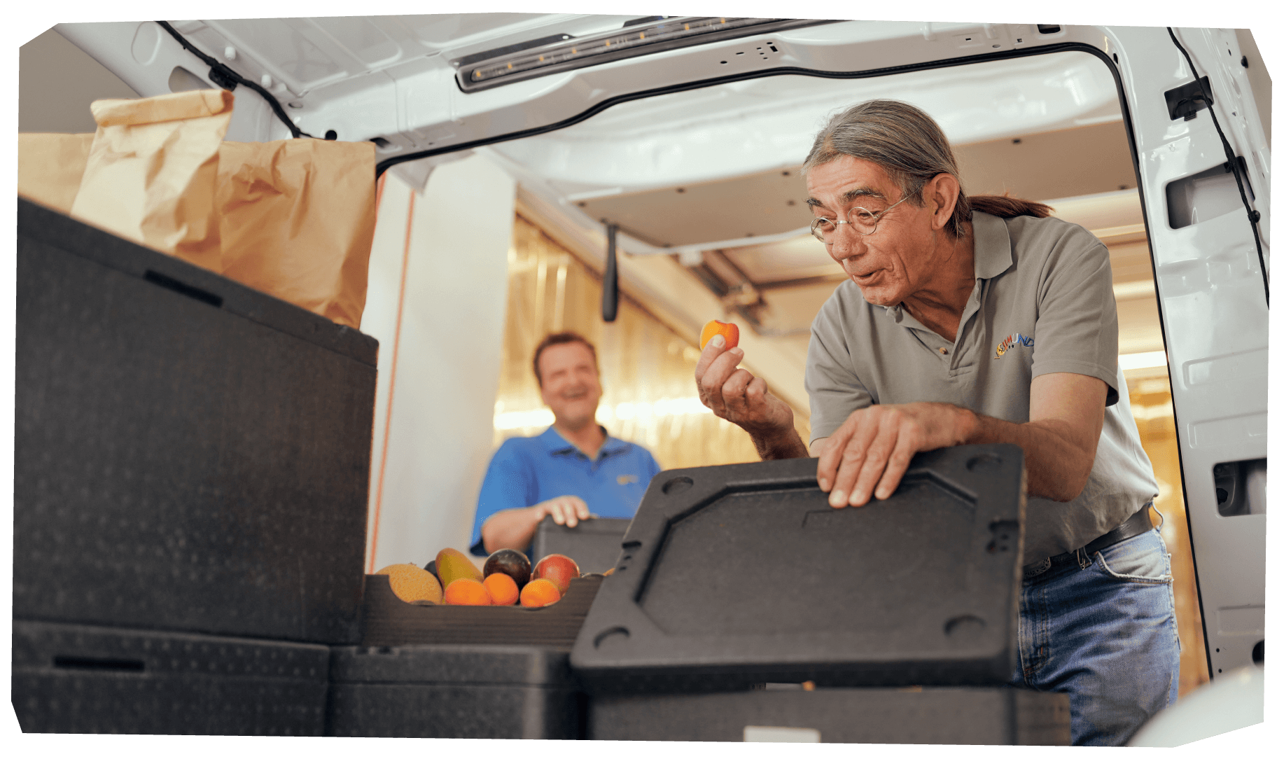 Nicht nur unser Essen liefern wir heiß, sondern auch der Draht zu unseren Kund:innen glüht jeden Tag: Edgar und Volker kümmern sich seit über 25 Jahren um alle Fragen, Nöte und Wünsche. Sie sind die Experten für alles im Unternehmen, denn sie nehmen Bestellungen entgegen, geben Informationen an die Mitarbeiter:innen in der Küche und organisieren die Fahrer:innenflotte. Falls irgendwas nicht passt, machen Edgar und Volker es passend. Die beiden haben für jedes Problem mindestens eine Lösung.