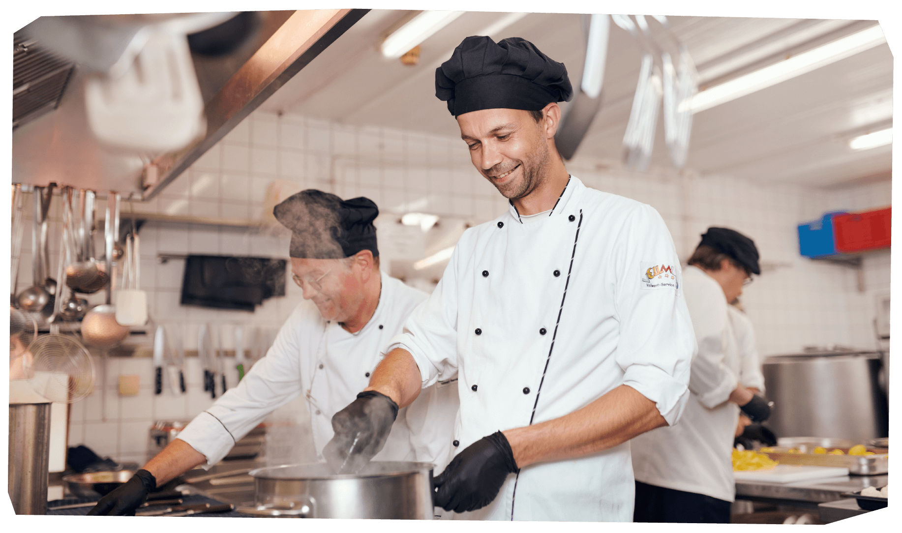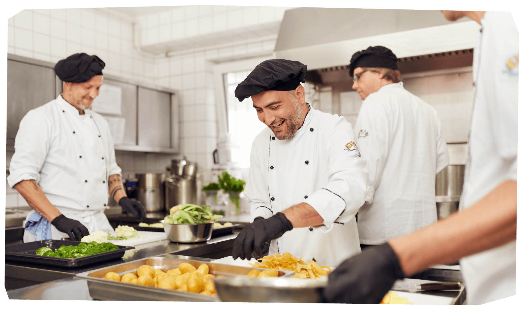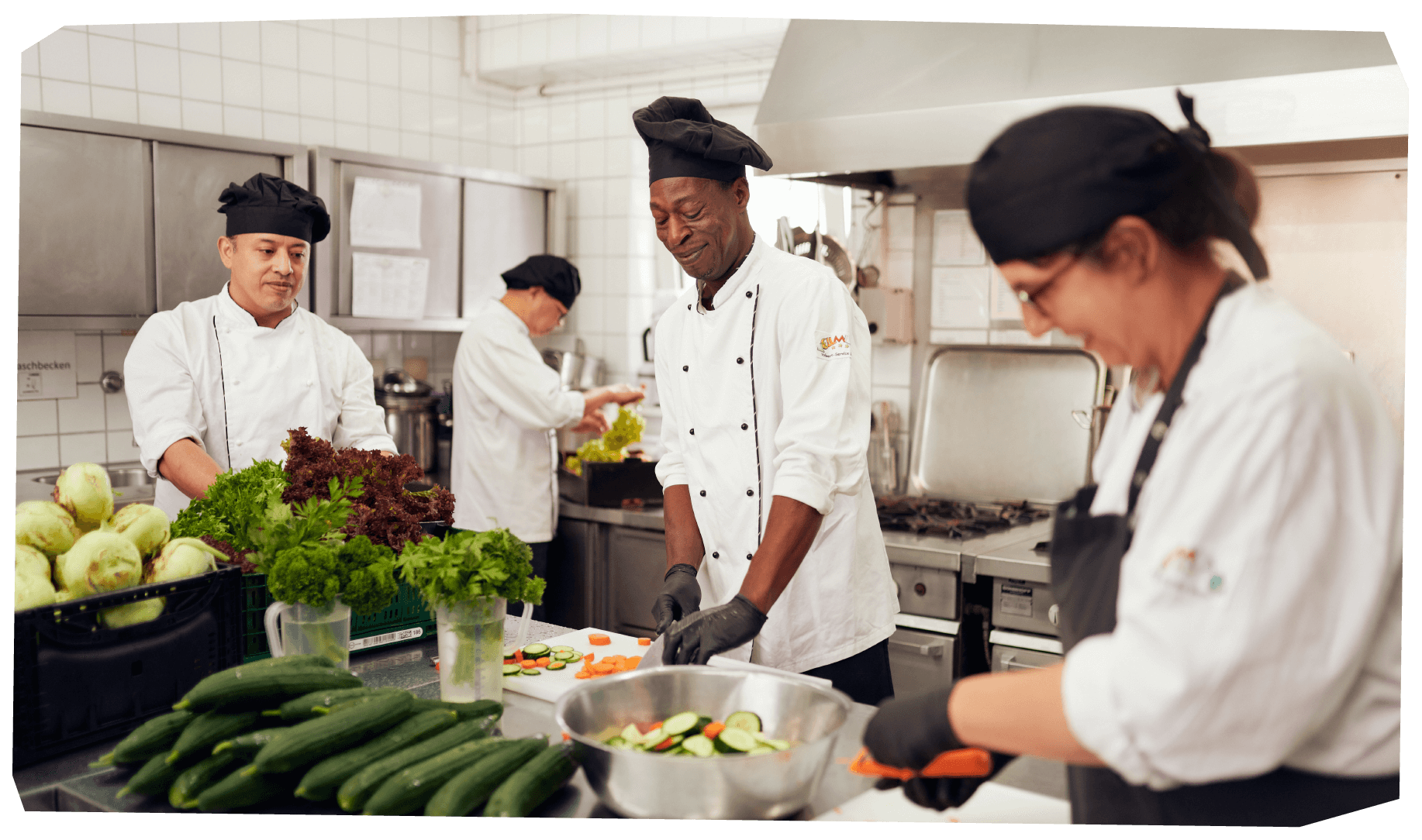 Der frühe Vogel kocht das Menü! Unser Küchenteam fängt täglich mit der Arbeit an, wenn Hamburgs Kinder noch im Schlummerland sind: um 5.30 Uhr. Und weil die Kleinsten zum Mittag immer den größten Hunger haben, kommen bei uns auch Riesenmengen zusammen.